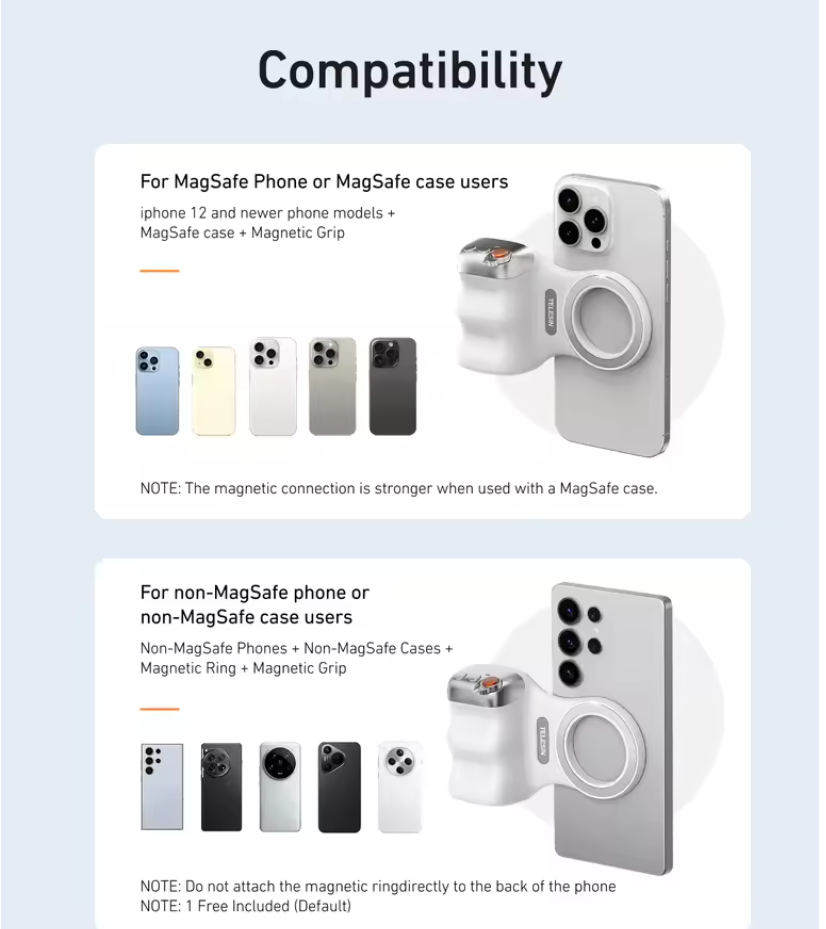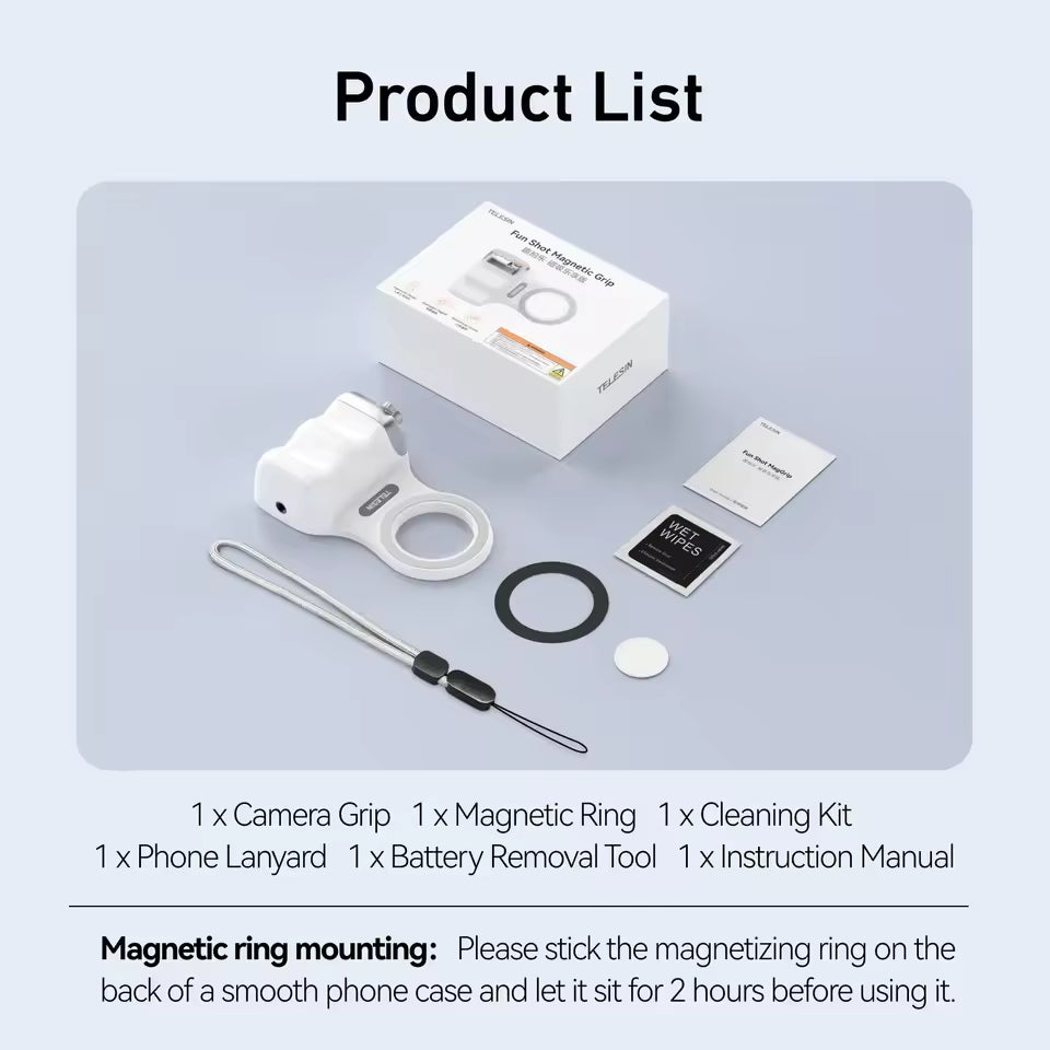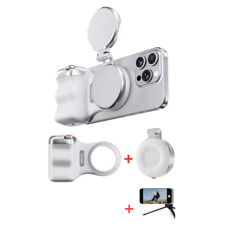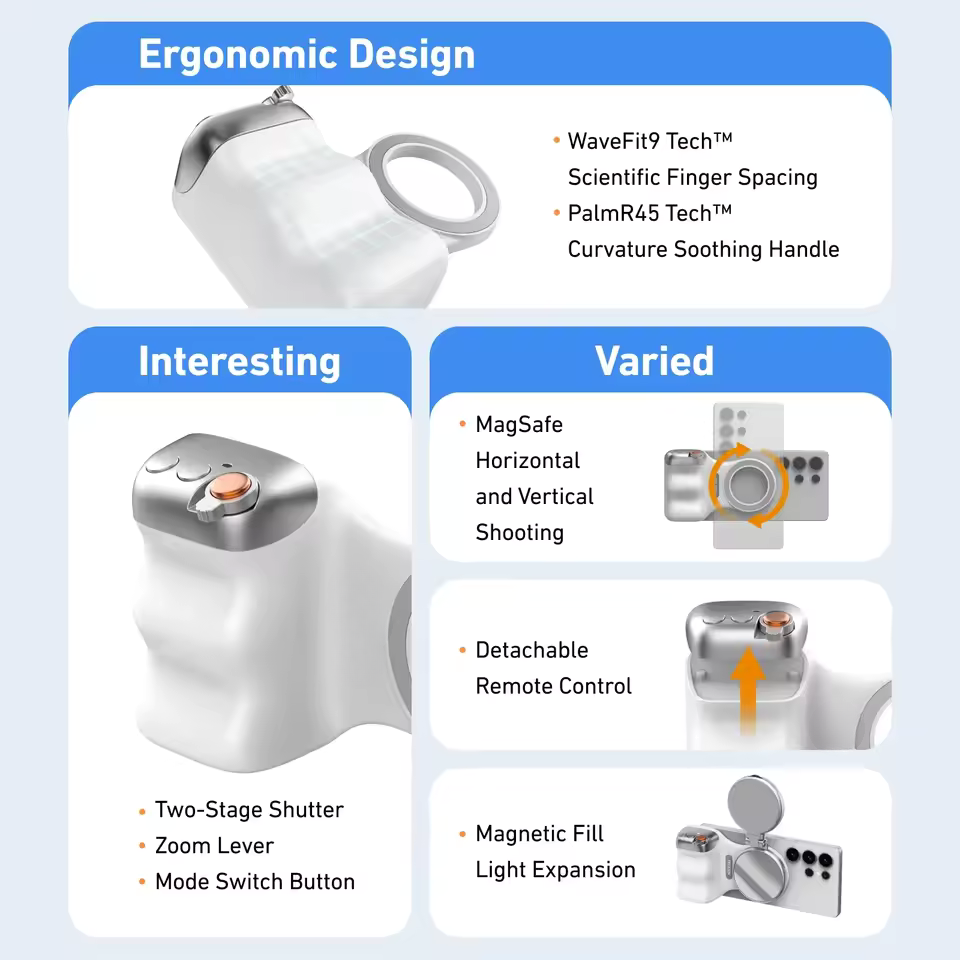 Lightweight and portable, this all-in-one grip features a strong magnetic mount, ergonomic design, and wireless remote shutter—everything you need to capture steady, professional photos and videos anywhere.